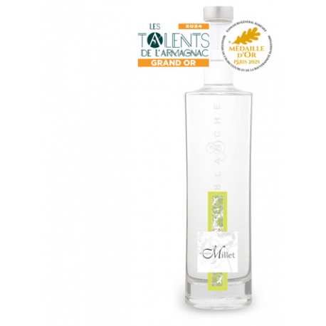 La Blanche est l’armagnac naissant juste sorti de l’alambic, eau-de-vie pure et incolore, vierge de bois. A la fois très puissante et d’une grande finesse elle vous surprendra par sa complexité et son originale personnalité : notes fruitées (prune, melon confit) et de fleur de vigne. A servir glacée avec du saumon fumé, nature à l’apéritif, ou encore en long drink particulièrement avec du citron vert.